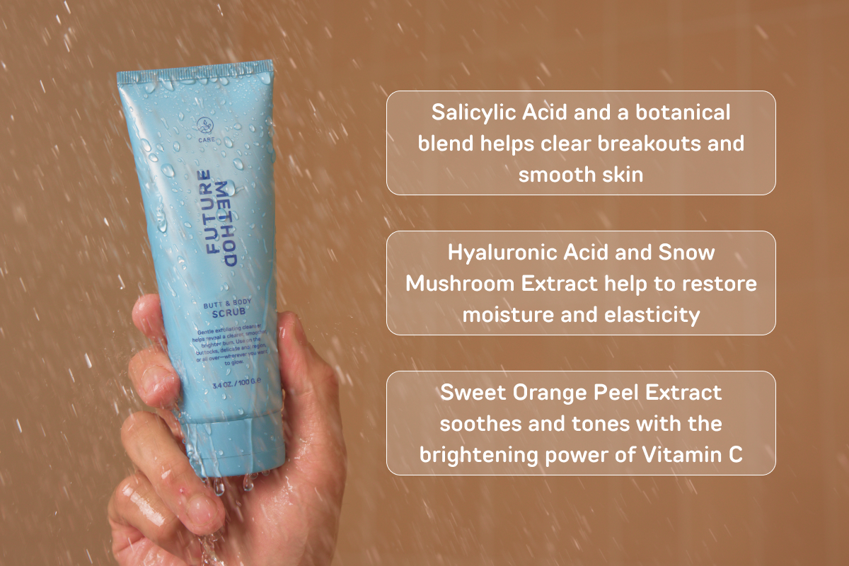 The everyday grime from life isn't limited to our hands and faces—it builds up everywhere, including your butt. We sweat, poop, shave or wax, and have sex, all of which can lead to buttne (acne in the butt region). Plus, skin around the hole tends to darken due to friction and inadequate skincare. Even wearing a thong can do it. Our formula not only cleanses and rejuvenates but also helps prevent blemishes and supports an even skin tone.