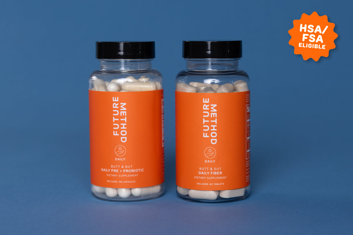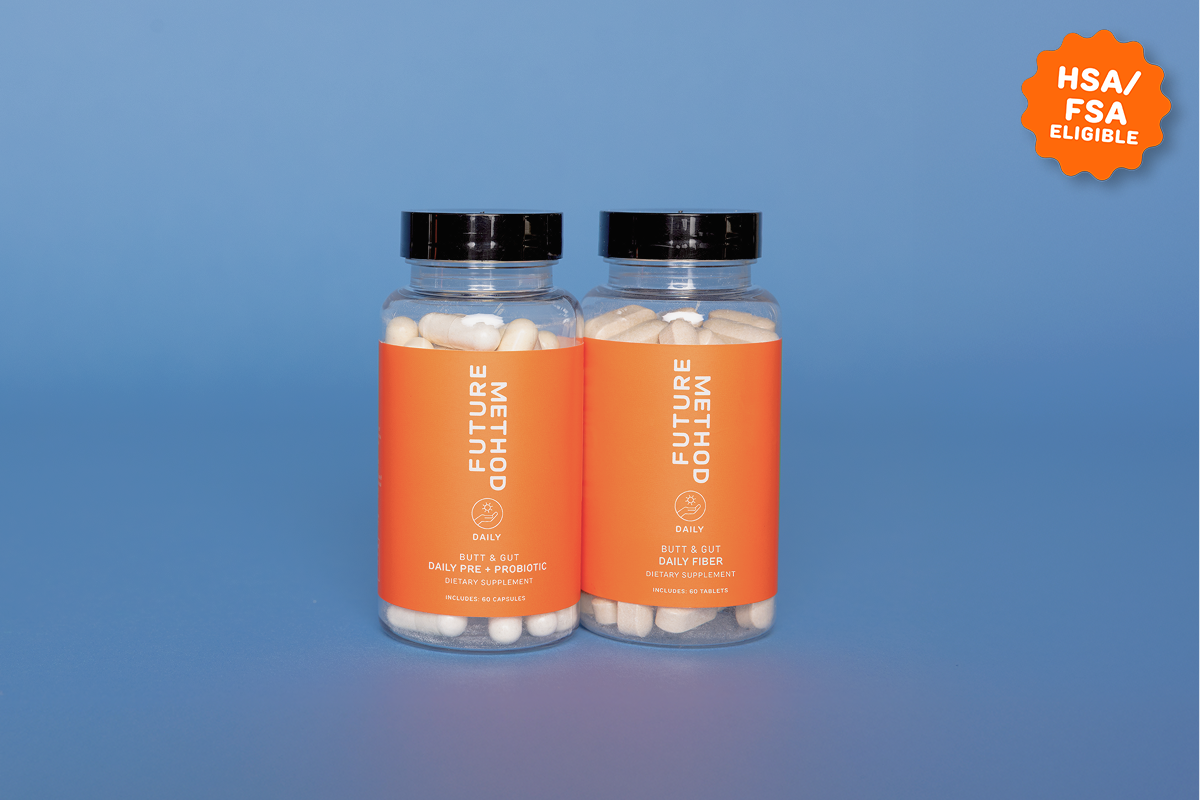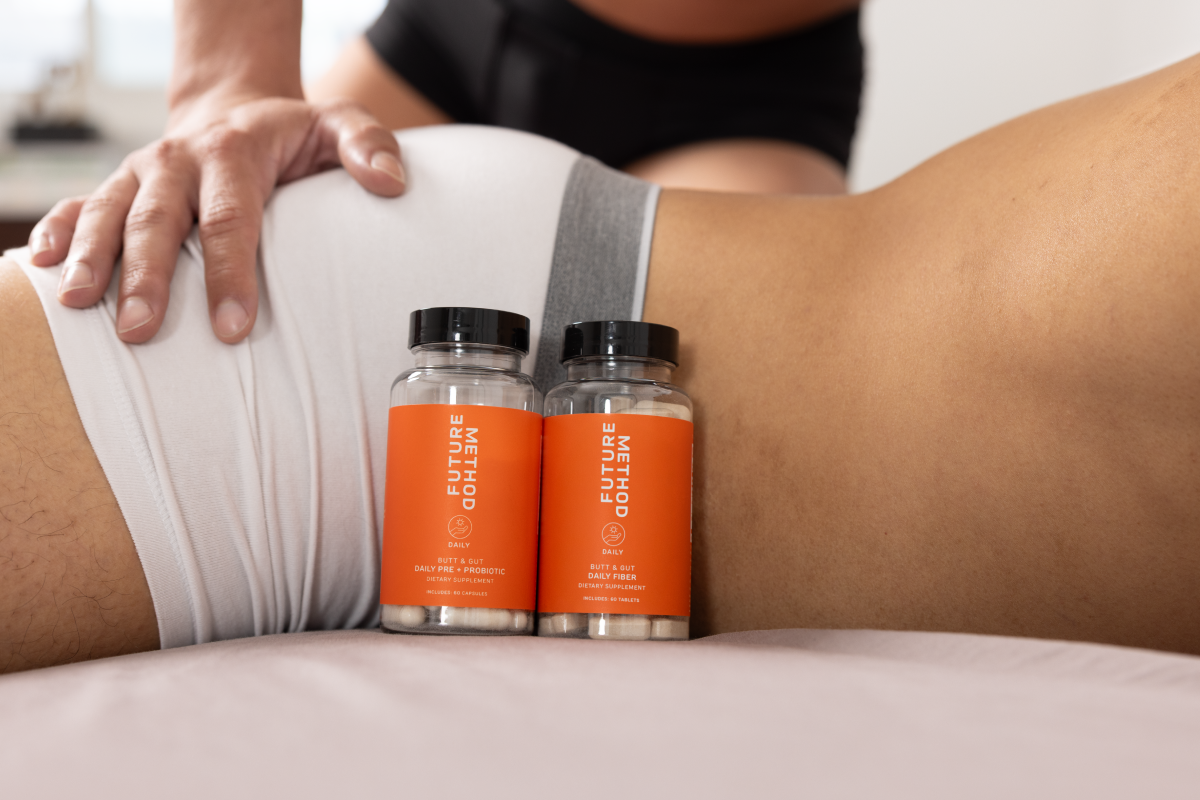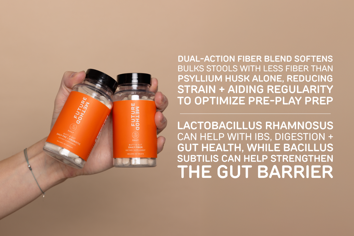 Support your gut and colon health with our Butt + Gut Daily Fiber and Pre & Probiotic bundle. Our Inavea™ fiber formula nourishes bifidobacteria, promotes fullness, and aids digestion while softening and bulking stools—like psyllium husk, but with fewer capsules (just two!). Paired with our Pre & Probiotic, which encourages good bacteria in the rectum and supports smooth digestion, this duo helps reduce straining, promote regularity, and keep your gut primed for both everyday wellness and optimal playtime prep.