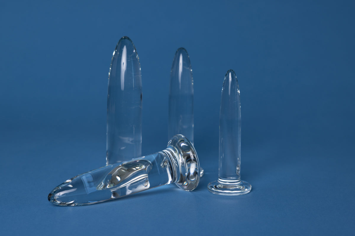 Dilators made from body-safe, shatterproof, non-porous Borosilicate glass. Hypoallergenic and phthalate-free.