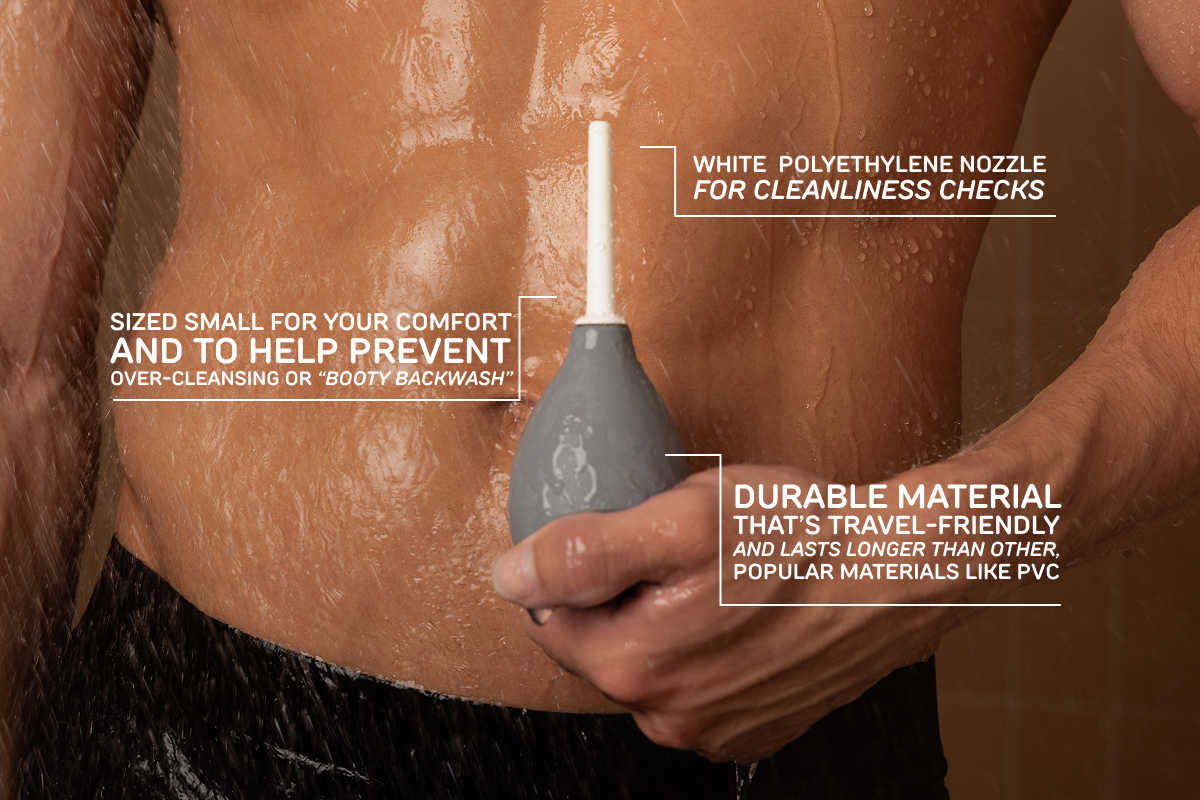 This compact douche gently washes away lingering waste before sex, shortens prep time, and works with your favorite douching liquid. Sized small for your comfort, our reusable rectal bulb shines in backdoor prep without the risk of over-cleansing or "booty backwash".