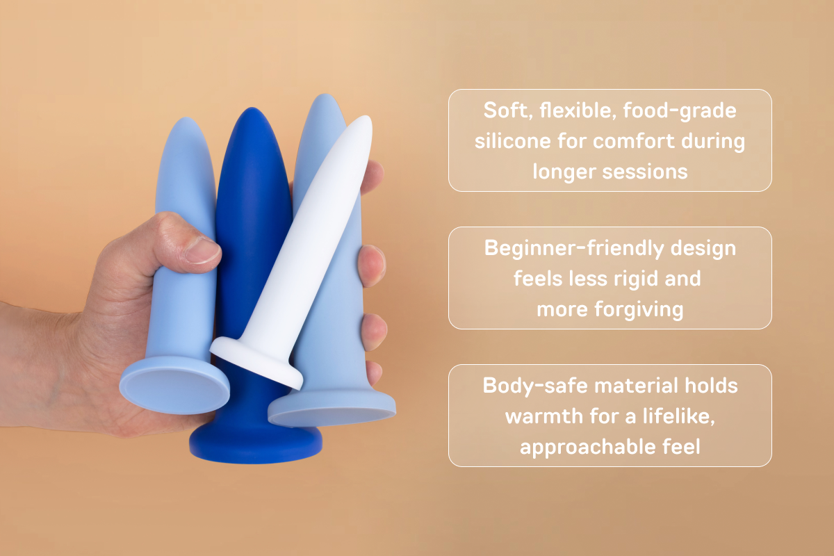 No matter your experience level, we always recommend starting with the smallest size and using it until insertion feels easy and comfortable—usually 1–2 weeks—before progressing to the next size up.