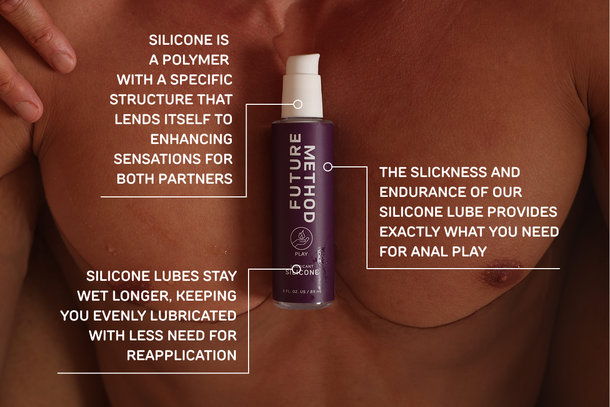 ×We know friction can lead to higher risks of possible complications, such as STIs and anal trauma, like fissures and hemorrhoids. It’s incredibly important to use a lubricant with the highest lubricity possible, which is why silicone lube is my go-to for anal play.
